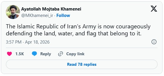 اپنے پیغام میں انہوں نے زور دیا کہ ایرانی فوج نہ صرف بری بلکہ بحری سرحدوں کی بھی انتہائی بہادری اور پیشہ ورانہ صلاحیت کے ساتھ حفاظت کر رہی ہے۔ایران کے دشمن ہمیشہ ملک کو تقسیم کرنے کی کوششوں میں مصروف رہے ہیں، تاہم مسلح افواج کی بروقت کارروائیوں اور قربانیوں کے باعث یہ تمام عزائم ناکام ہوئے۔فوج دیگر سیکیورٹی اداروں کے ساتھ مل کر قومی دفاع کو مزید مضبوط بنانے میں اہم کردار ادا کر رہی ہے۔انہوں نے فوجی جوانوں کی خدمات کو سراہتے ہوئے اس عزم کا اظہار کیا کہ ایران اپنی دفاعی صلاحیتوں کو